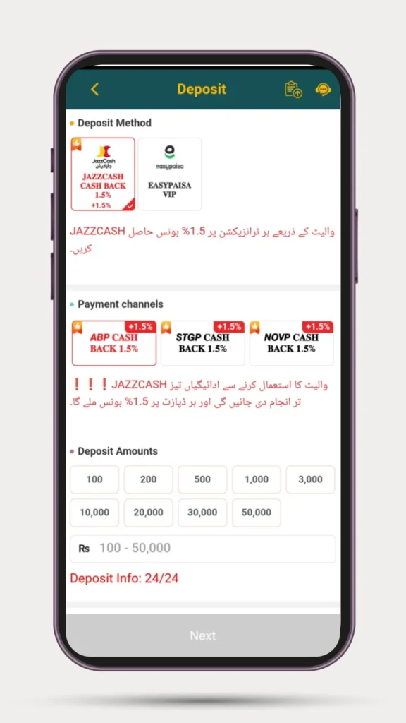 Users can easily add money to their account using available payment methods. The process is fast and simple.